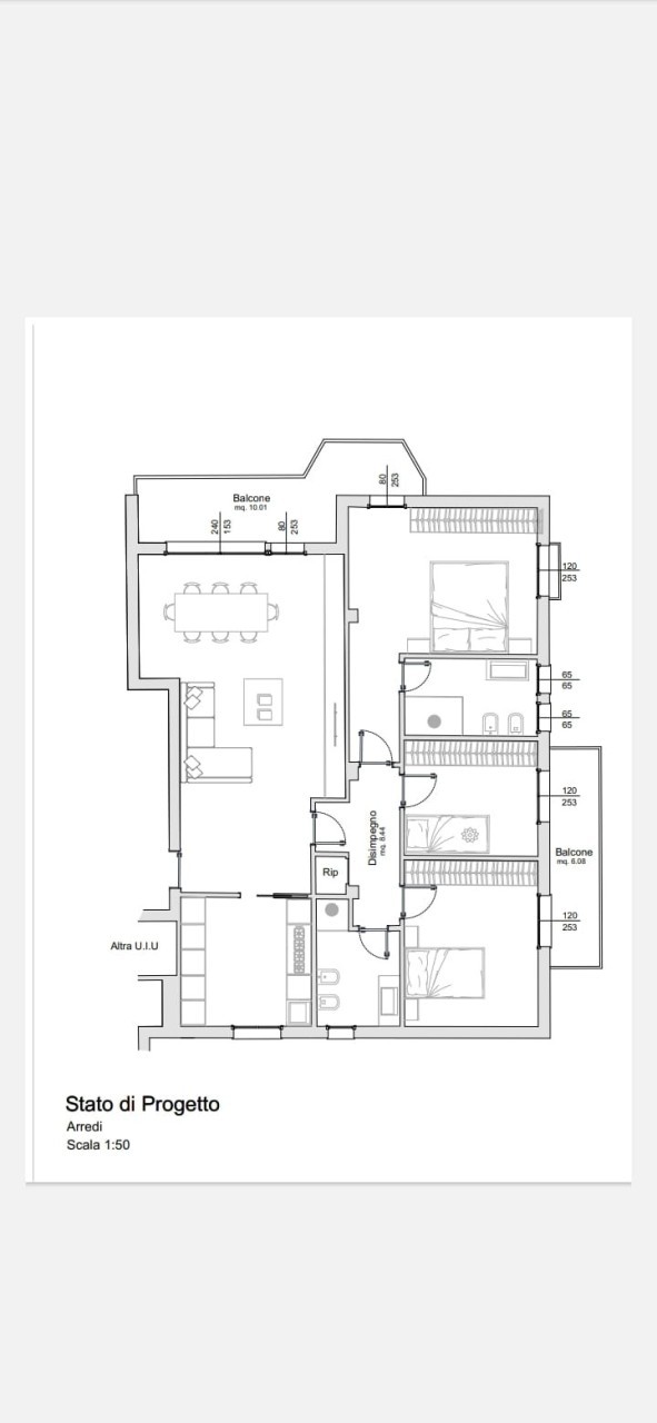 L'immobile è composto da luminoso soggiorno con accesso al balcone, cucina separata, tre camere da letto e due bagni. Completano la proprietà un garage singolo, una cantina e una soffitta.